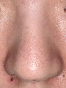 鼻尖の毛穴は依然目立つものの、毛穴一つ一つの開きは少し改善したと思います。